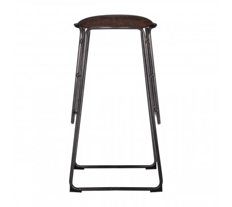 The Bentos bar stool’s design is informed by vintage manufacturing heritage. Its angular legs are made from strong metal, each side featuring a welded footstool to enhance seating comfort. Their dark gunmetal finish complements the mocha colored seat. Made from faux leather, the seat is smooth to the touch and comfortable to sit on.