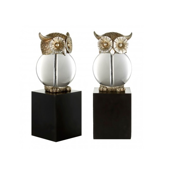 A charming way to organise books, the Owl bookends set will keep your favourite novels beautifully displayed in your living space or bedroom. Crafted from polyresin and glass, the chic bookends will complement any setting. The owls heads and feet are given an antique silver finish, accentuating their textured design, while a clear glass orb in the middle gives it a contemporary look. A black cube provides sturdiness and stability while giving the bookends more prominence on your mantle, shelf, table or windowsill. The Owl bookends set will complement most decors, adding their own touch of chic to your room.