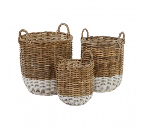 55 South combines function and style with the beautifully crafted set of 3 storage baskets, providing any room with a rustic solution for keeping your home organised and tidy. Elegantly weaved together, the split Kubu rattan ensures toughness, while the natural colour is complemented with a grey finish for a charming look. The two sizes, small and large, will give you ample space for storing household and personal items, while handles on either side make them easier to carry when required. A wonderful way to keep your home clutter free, the set of three storage baskets add as much style as they do functionality.