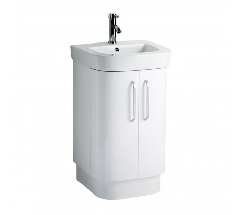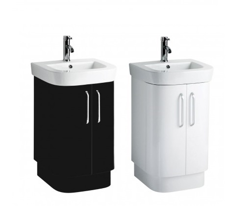 Contemporary and stylish, basin and under sink cabinet set will bring a new look to your bathroom while providing a storage solution. The sleek basin is made from chic white ceramic that is smooth and durable that contrasts the MDF under sink cabinet which is given a black high gloss finish. The cabinet features a double door design that has ample space to store your bathroom essentials while keeping them close to hand. Two chrome finished metal handles add a touch of glamour to the unit while ensuring you can easily access your bottles, soaps, towels etc. The chic design will complement a modern setting giving your bathroom a striking feature that you will use every day.