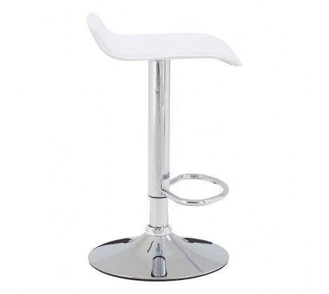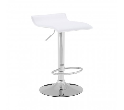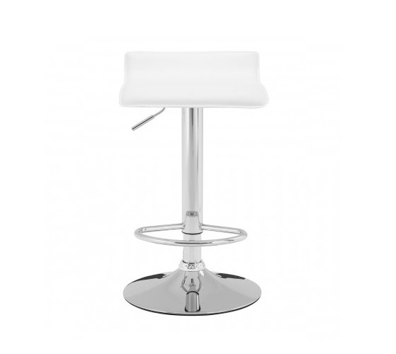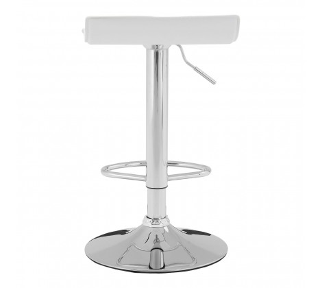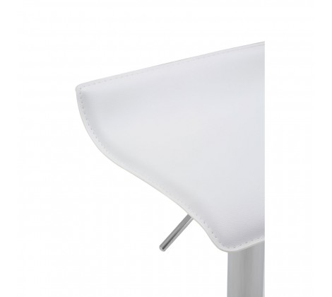 The seat is upholstered in smooth white faux leather, its subtle curves providing support for the back and legs. Further comfort is created via the footrest which is attached to the strong metal stand. A wide chrome metal base keeps the stool stable and secure. Adjust the height by using the slim lever positioned just beneath the seat.